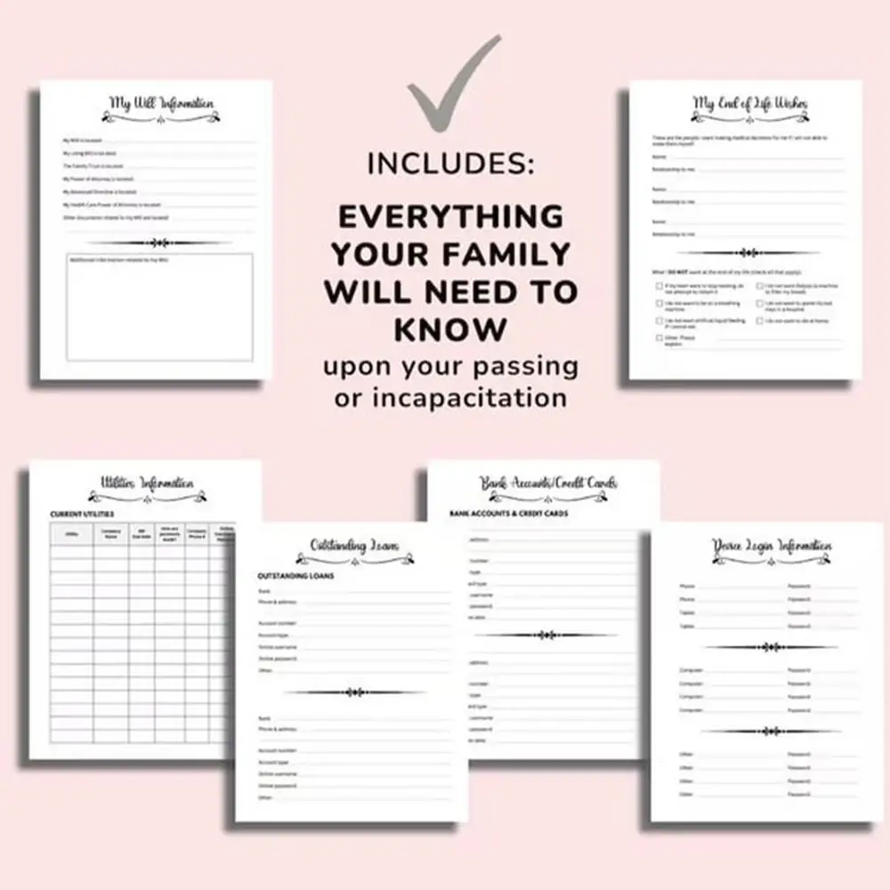 4.Financial Harmony Assured: Stay ahead of the game with our end-of-life planner, designed to help you organize your bank accounts, credit cards, retirement accounts, and property information. Enjoy a humorous touch while achieving financial and property management.