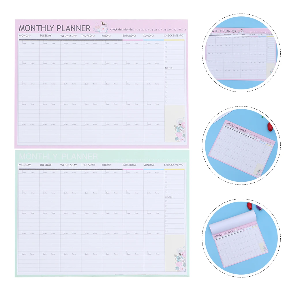 Monthly Planner 2 Books Daily Planners Notepad Carry Work Portable A4 Size Task Scheduling Weekly Spread Undated Pages Thick