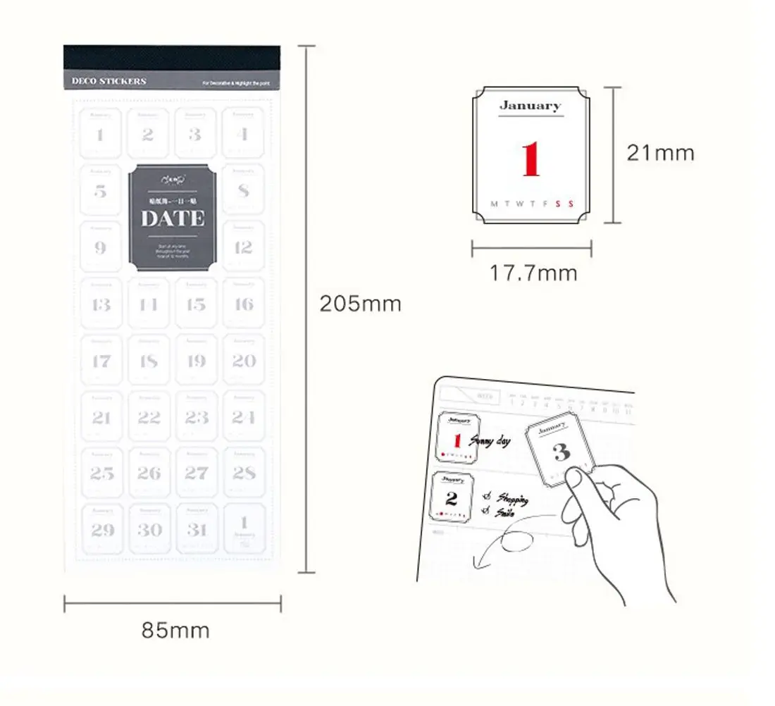 Planner Scrapbooking Sticker Journal Agenda Calendar Sticker Daily Plan Sticker 365 Days Date Stickers Number Date Label Decals